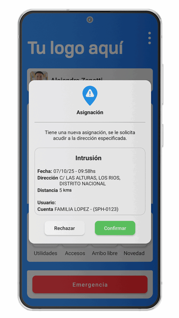 El guardia recibe nuevas asignaciones y tareas por notificación push, accede a la información completa del servicio y navega directamente hasta el lugar.